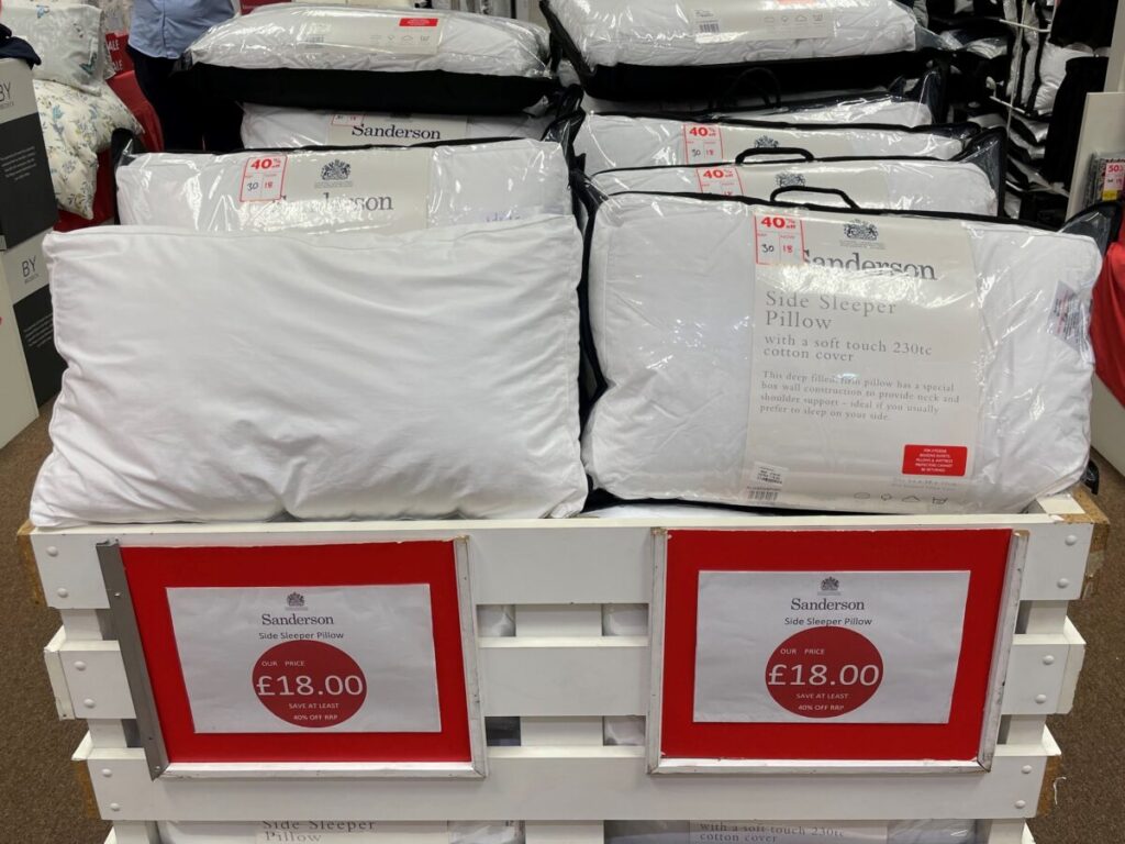 丁度、「王室御用達」の枕が40%引きで売っていたので、衝動買いした。