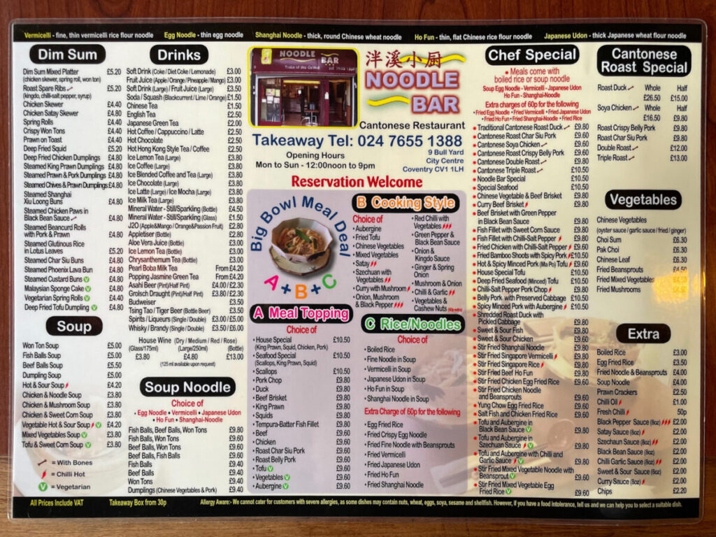 「コベントリー」の街中で昼食を探し、グーグルマップで評価の高かった「Noodle Bar Taste of the Orient」へ行ってみた。