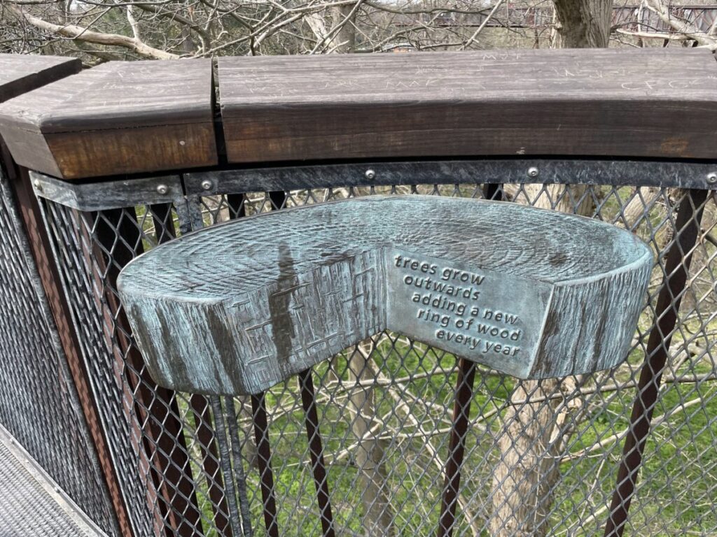 trees grow outwards adding a new ring of wood every year