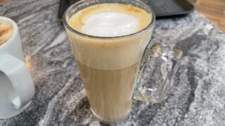 飲み物50点 イギリス【ハフキンス本店】 カフェラテ Latte < 値段 >Huffkins Burford(ハフキンス本店):£3.95(2023年12月) < 感想 >普通のカフェラテ。特に美味しくも不味くもなく、ごくごく普通。 2023.12.31飲み物外食イギリス