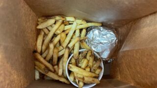 食べ物65点 イギリス【ファイブガイズ】 フライズ Fries < 値段 >Five Guys(ファイブガイズ)Little:£3.75Regular:£5.25Large:£5.95 写真はレギュラーサイズのポテト。写真を見てわかるように、紙コップが付いているものの、紙コップ内に収める... 2023.06.21食べ物外食イギリス