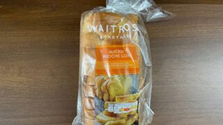 食べ物65点 イギリス【ウェイトローズ】 菓子パン Waitrose Sliced Brioche Loaf < 商品名 >Waitrose:ウェイトローズ(店名)Sliced:薄切りのBrioche Loaf:ブリオッシュのローフ(大きな一斤のパン) ブリオッシュはフランスの菓子パン。水の代わりに牛乳を加え、バターと卵を多く使った... 2021.11.01食べ物イギリス
