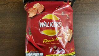 食べ物60点 イギリス ポテトチップス(クリスプス:Crisps) Walkers Flamin’ Hot < 商品名 >Walkers:ウォーカーズ(社名)Flamin' Hot:炎のように熱い < 値段 >ASDA(アズダ):£1.50(25g×6袋)【2021年10月】(£0.25/袋)(£1.00/100g) ... 2021.10.14食べ物イギリス