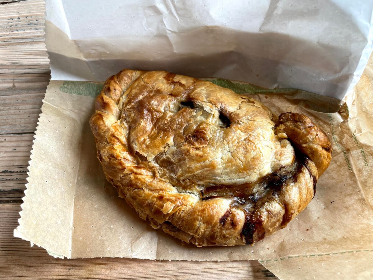 伝統的なコーニッシュ・パスティは牛肉、薄切りジャガイモ、ルタバガ、タマネギを具とし、焼いて作る。