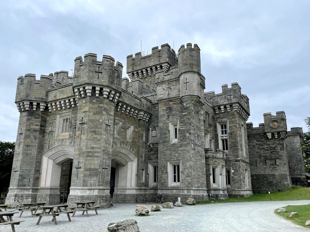 ウィンダミア湖畔に建つゴシック・リバイバル様式の城で、タレット、タワー、非公式の敷地がある。