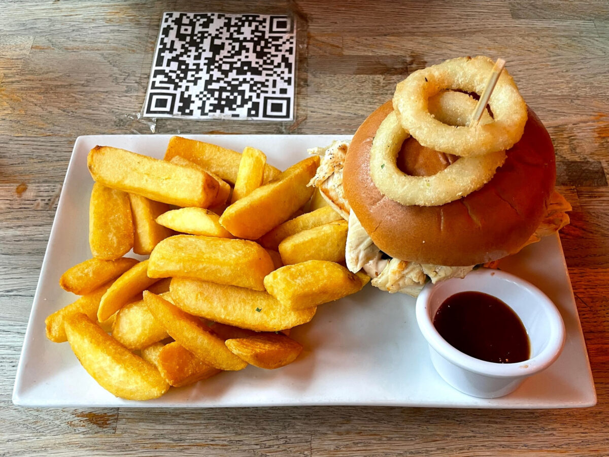 Toasted brioche bun, Lettuce, Tomato, Mayo, Chips.:トーストしたブリオッシュバンズ、レタス、トマト、マヨ、チップス。