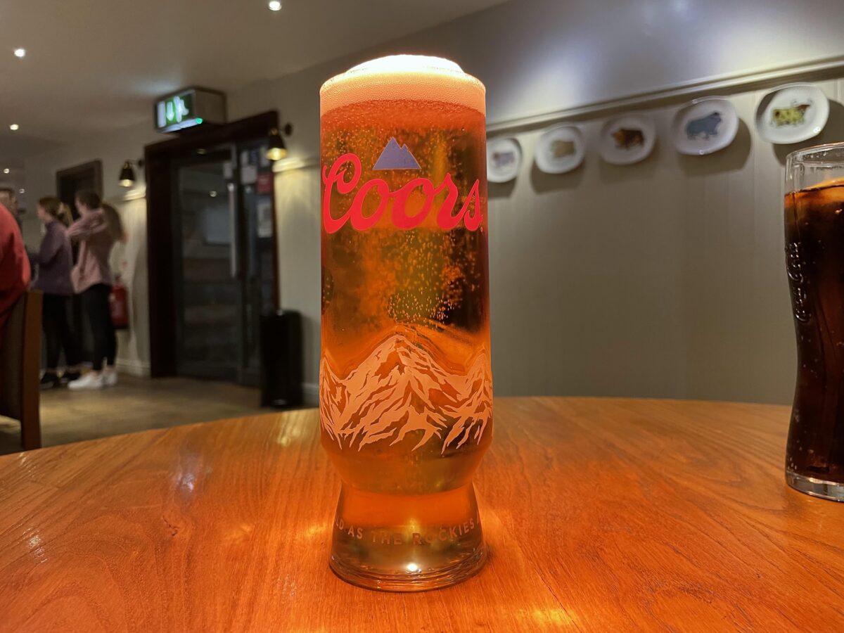 ジョッキは「Coors」に入れられてしまったが、中身は「Carling」。