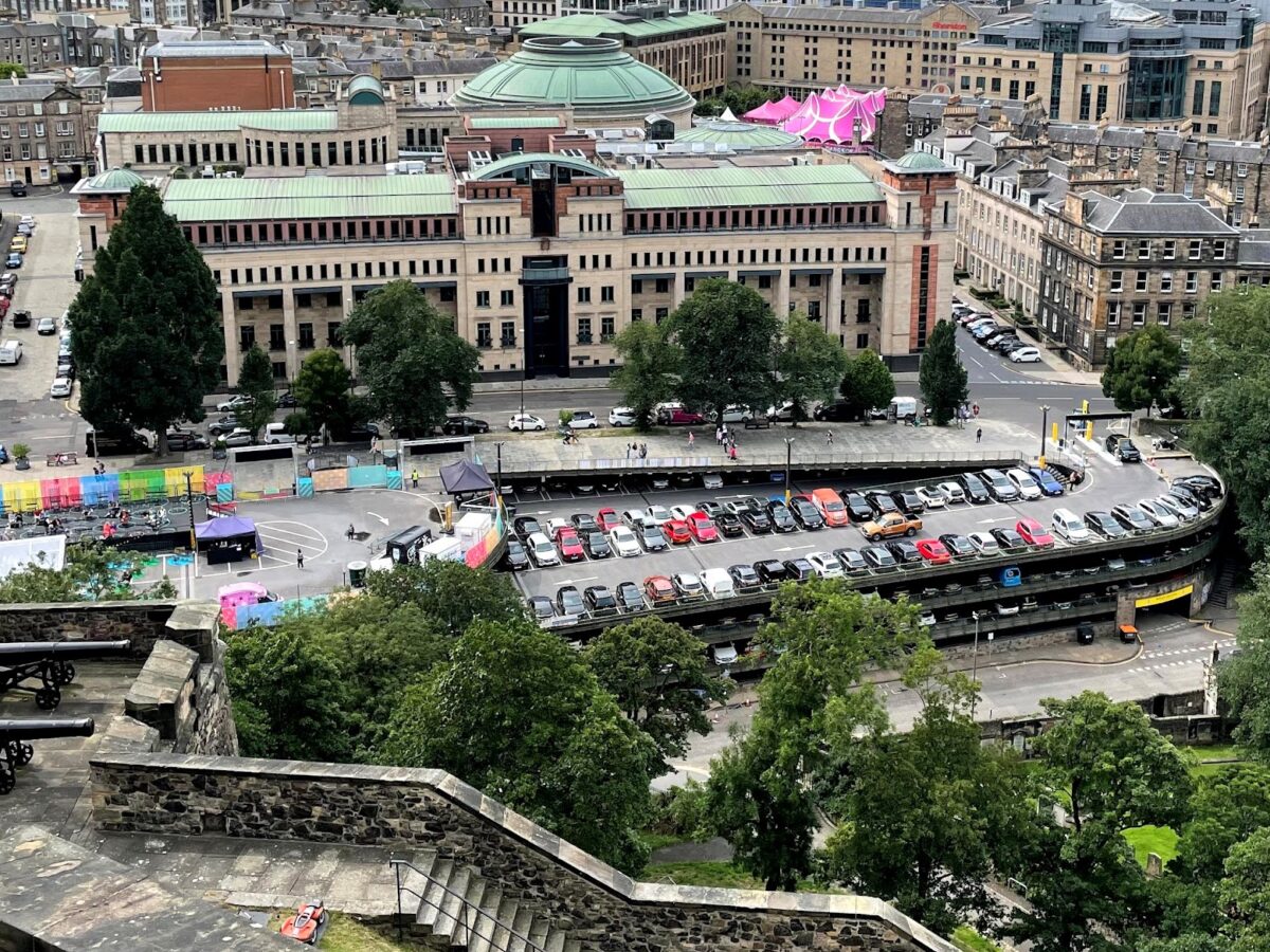 駐車場からももちろんエディンバラ城が見えているが、城の入口へは歩いて回り込む必要があるので、歩くと10分程度は掛かる。