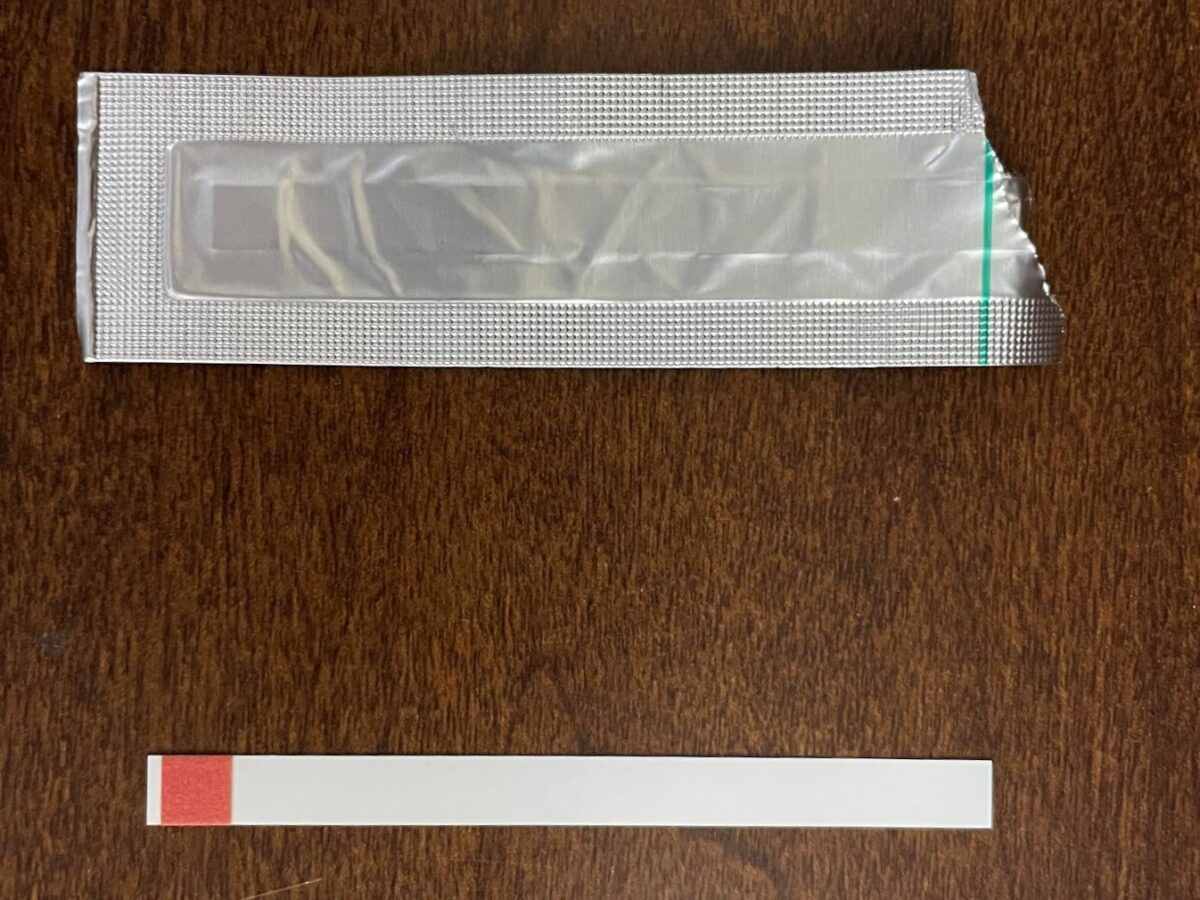 Soak the red response area of the test strip in a glass of your tap water for a few seconds.