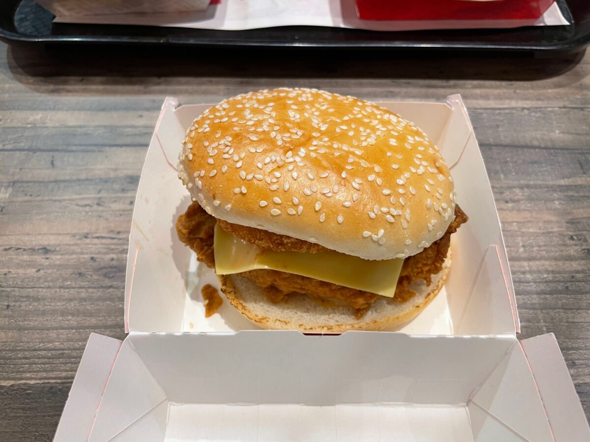普通のハンバーガーより若干大きく、チキンが一つと、サイドメニューでオマケが一品付く。