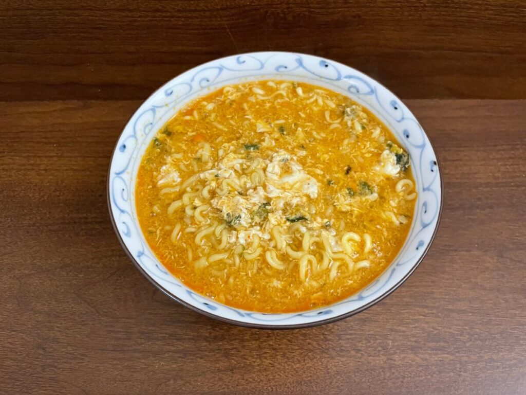 55点 イギリス【韓国食材】 オットギ 胡麻ラーメン ピリ辛 Sesame Flavor Ramen食べ物TwitterFacebookはてブPocketLINEコピー 2022.09.25 2022.09.17 この記事は約1分で読めます。スポンサーリンク< 商品名 >오뚜기:オットギ(ブランド名)Sesame Flavor:胡麻風味Ramen:ラーメン写真は、自分で卵を1つ追加したもの。< 感想 >辛い。韓国のラーメンは基本的に辛い。パッケージに辛いとは書いてないが、辛い。でも辛ラーメンのような狂った辛さではなく、普通に食べられる程度のピリ辛。麺は、インスタントラーメンらしい麺。普通に、ピリ辛インスタントラーメンが食べたい時には、丁度よい。