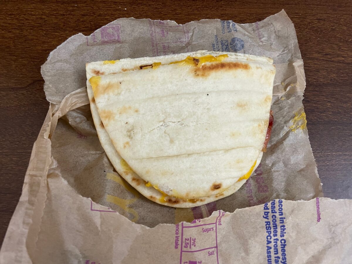 構成としては、マフィンと似ているので、「エッグチーズマフィン」と食べ比べをしてみた。