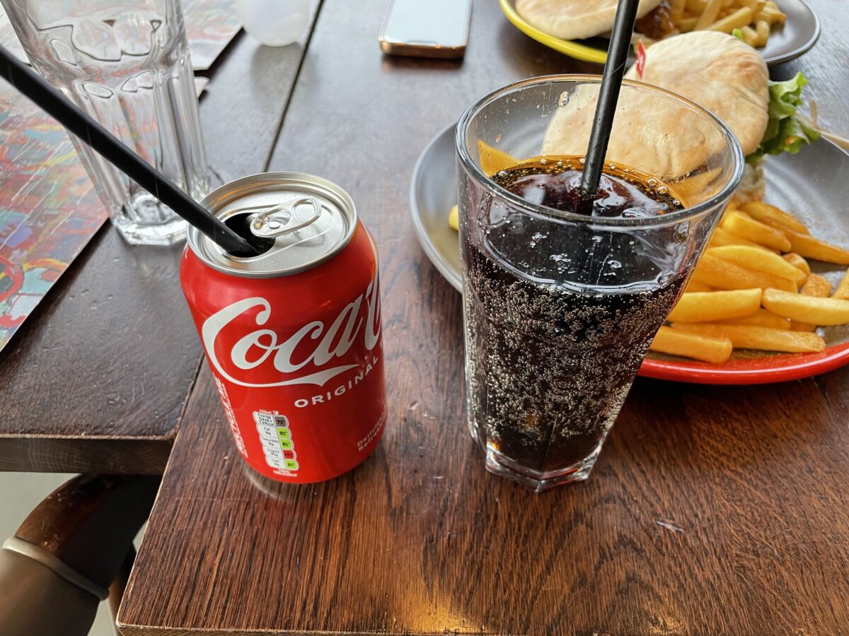 缶のコーラは冷えていなかったため氷を入れたが、それにより味が薄くなってしまい、結果としてドリンクバーのコーラの方が美味しかった。