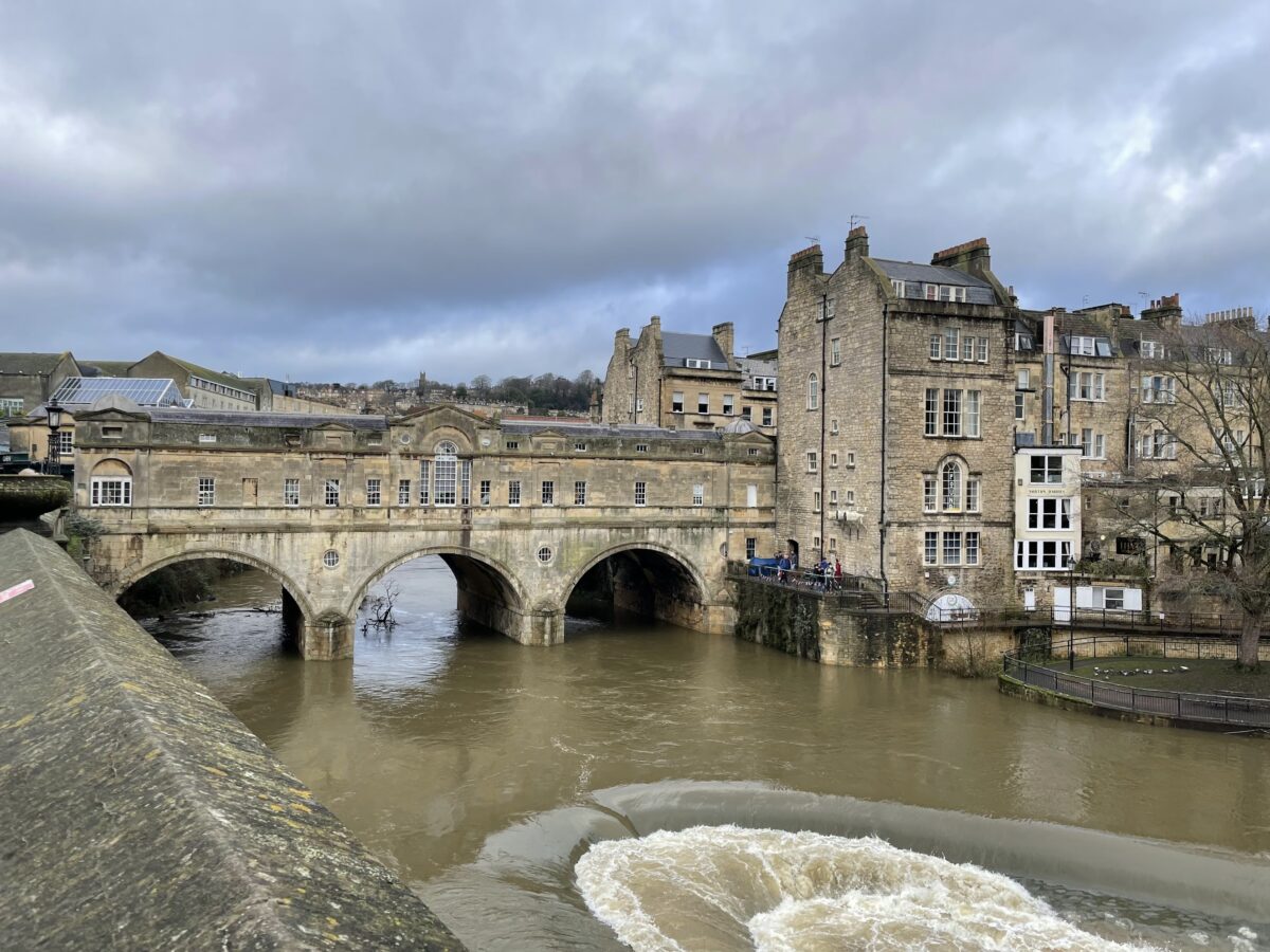 ジョージ王朝時代の建築物で有名な世界遺産の街の中心部に近く、多くの写真に撮られた橋と堰が眼下に広がっている。