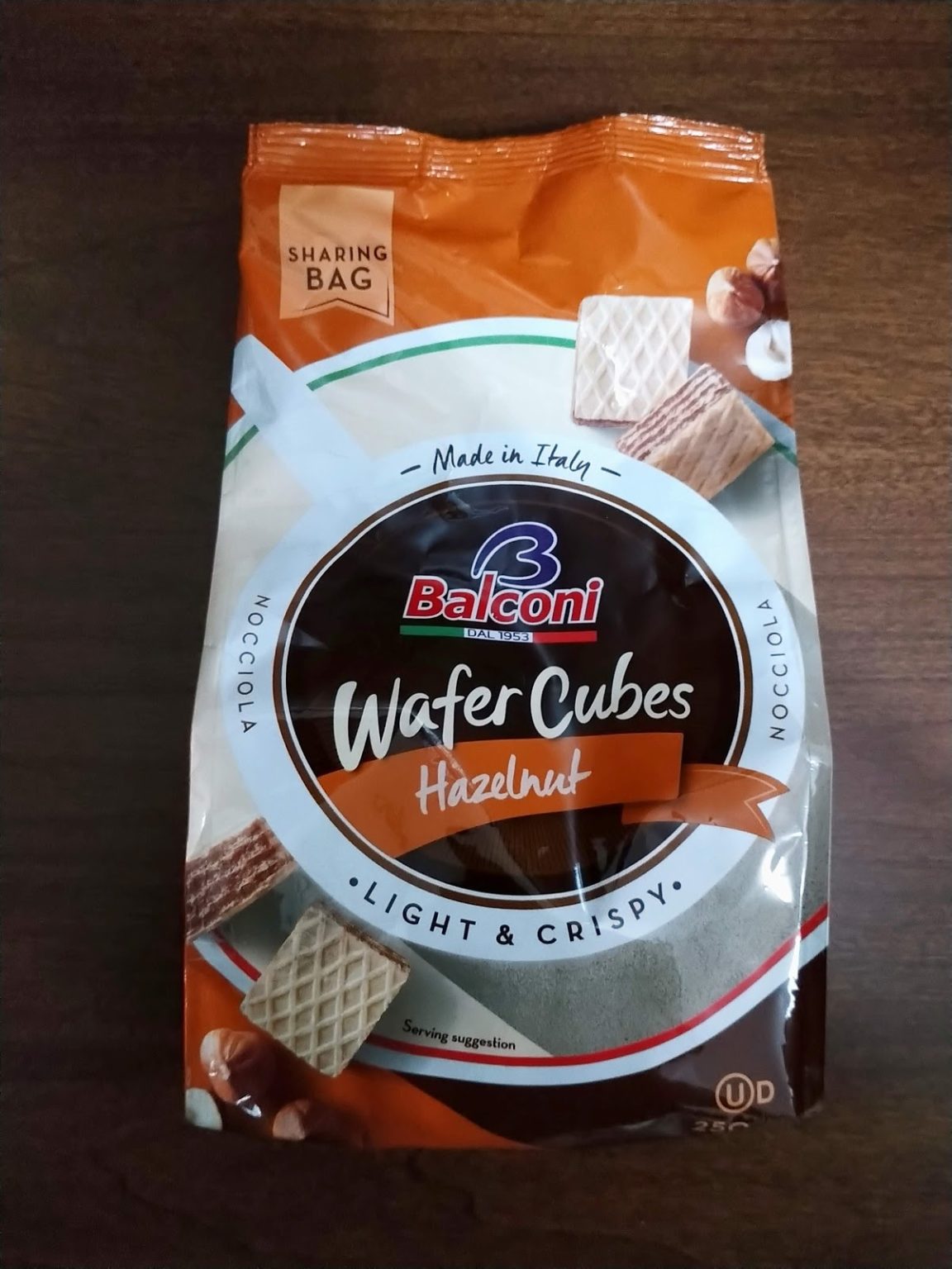 Our light and crispy Italian wafer biscuit cubes are generously layered with a rich creamy hazelnut & cocoa filling and are perfect with coffee.