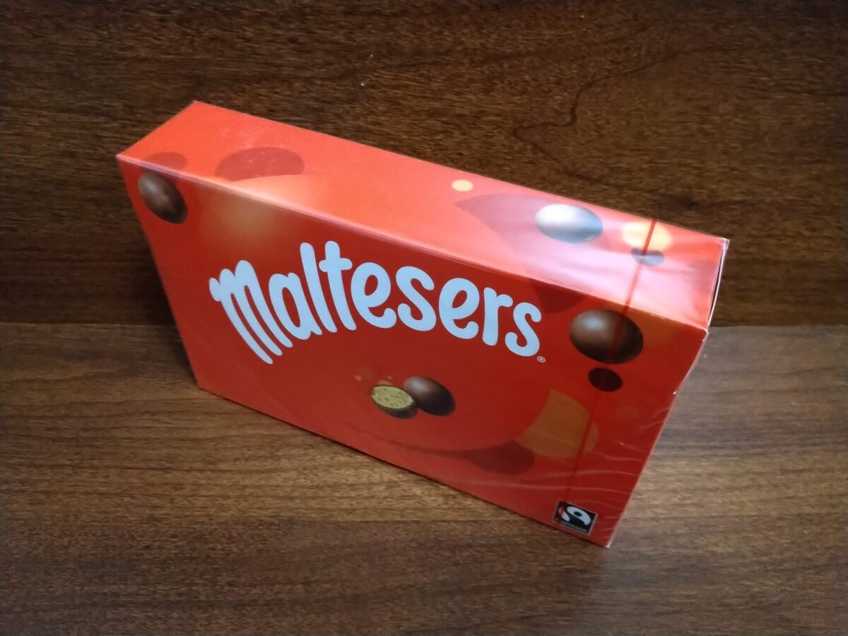 以前に買った袋入りタイプのモルティーザーズと同じ味だね。