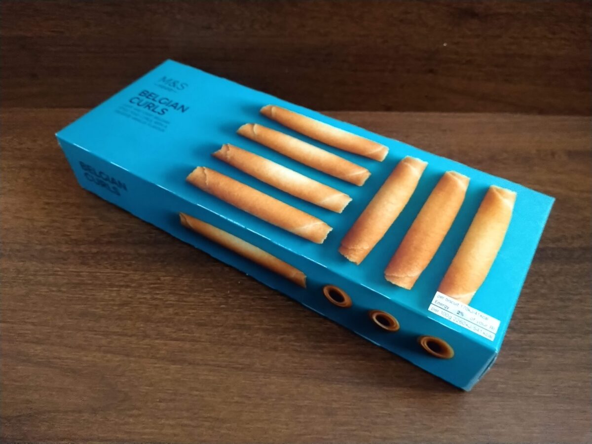 Light and crisp Belgian style tuile curls, with a delicate vanilla flavour.