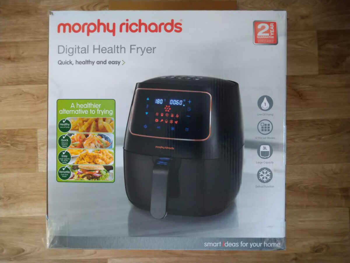 安いノンフライヤーは£30くらいからあるが「容量が小さい」「タイマーがセット出来ない」等の問題があったところで、そこそこ性能の良い本製品が割引されていたので買ってみた。