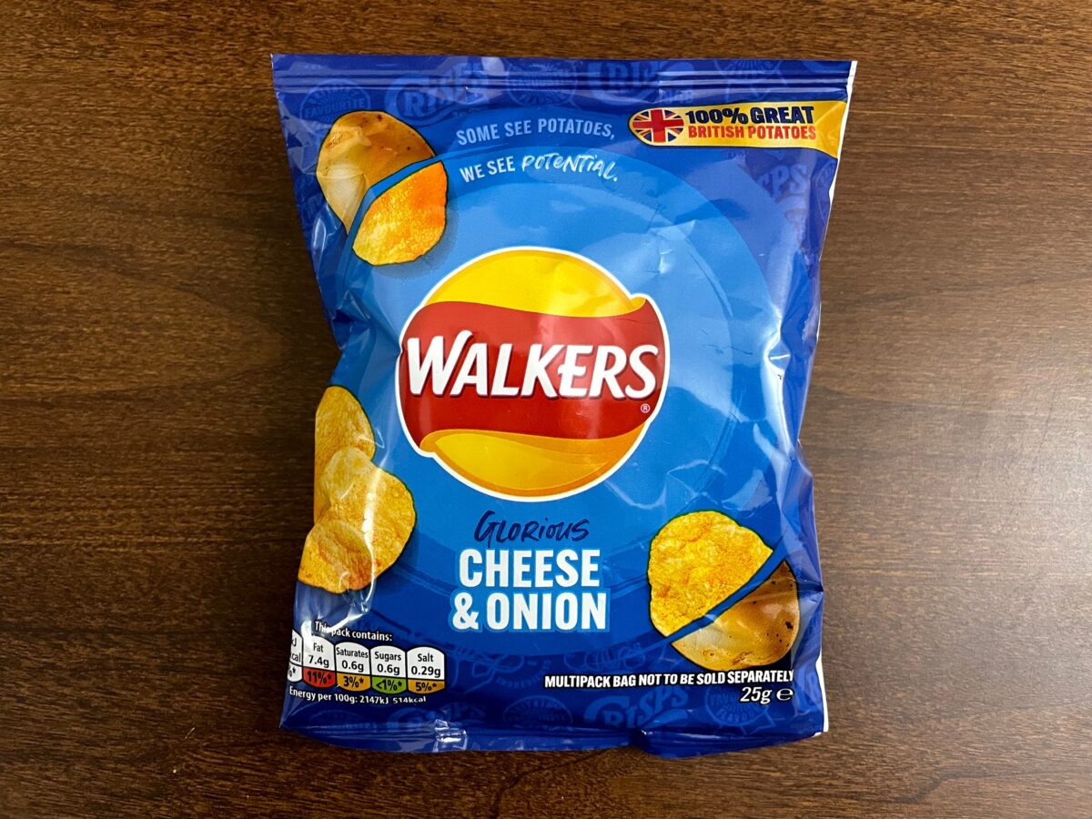 普通の塩味のウォーカーズポテトチップスと比べると、塩見は控えめだが、オニオンが効いているのか、出汁のような深みのある味がする。